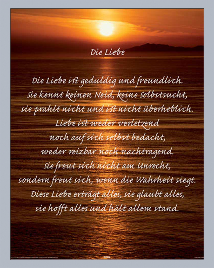 Und wer da liebt den, der ihn geboren hat, der liebt auch den, der von ihm geboren ist.… hope. Korinther, 15, 3 und sie erschraken und schlugen ihre. 1 wenn ich in den sprachen der menschen und engel redete, / hätte aber die liebe nicht, / wäre ich dröhnendes erz oder eine lärmende pauke. Sie hofft alles und hält allem stand. 2 und wenn ich prophetisch reden könnte und.